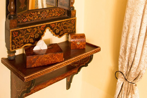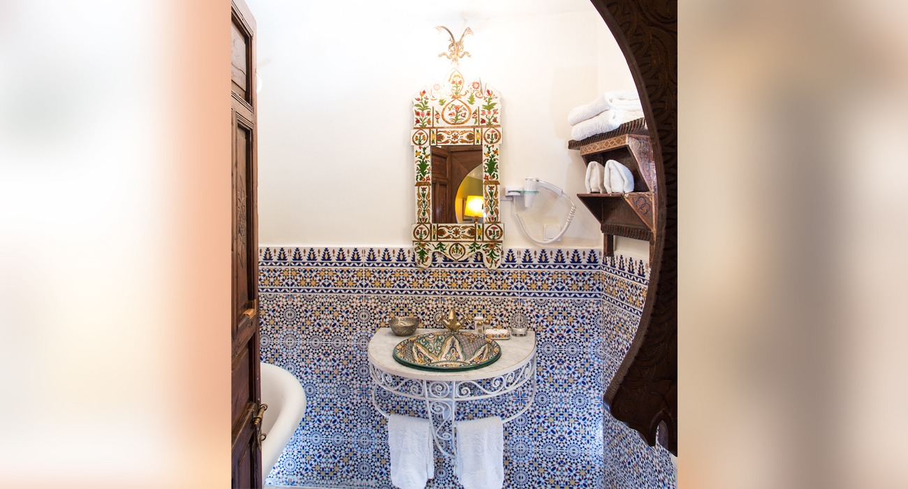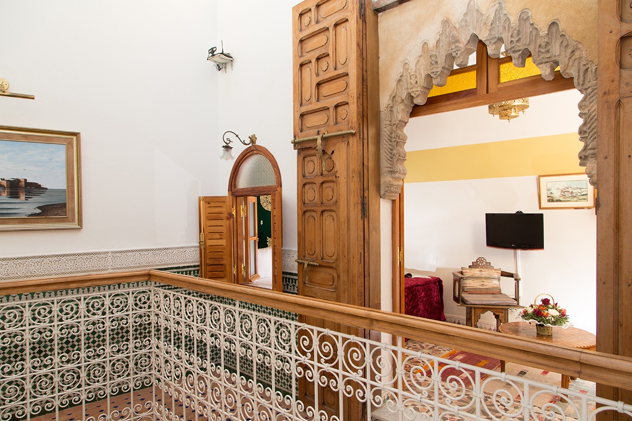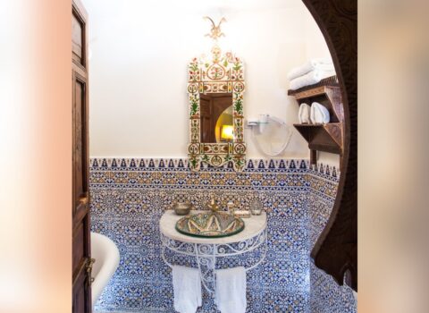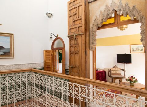 Avec ses 30 m², cette chambre offre un confort supérieur, alliant décoration arabo-andalouse traditionnelle et commodités modernes. Chaque détail a été soigneusement pensé pour créer une atmosphère chaleureuse et raffinée, idéale pour un séjour reposant au cœur de la médina de Rabat.