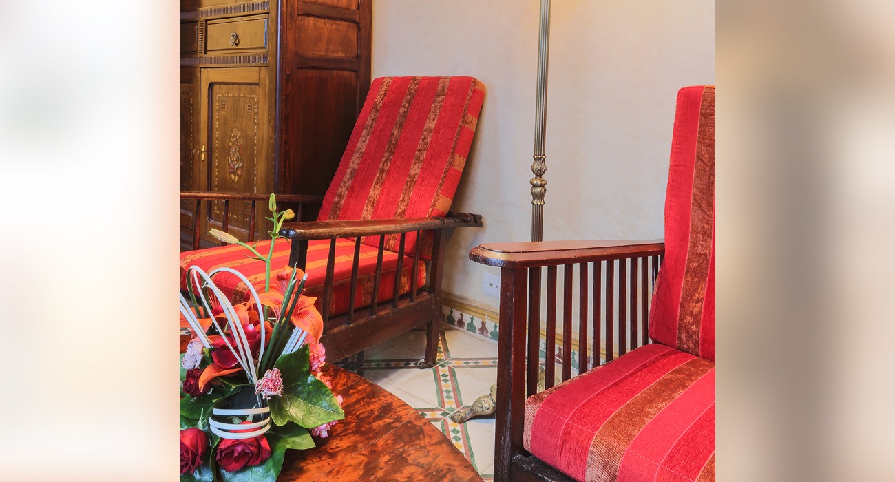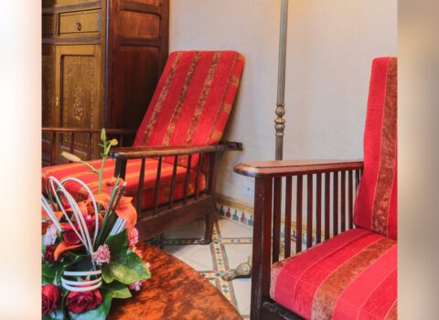 Avec ses 30 m², cette chambre offre un confort supérieur, alliant décoration arabo-andalouse traditionnelle et commodités modernes. Chaque détail a été soigneusement pensé pour créer une atmosphère chaleureuse et raffinée, idéale pour un séjour reposant au cœur de la médina de Rabat.