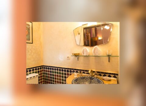 Avec ses 25 m², cette chambre offre un confort supérieur, alliant décoration arabo-andalouse traditionnelle et commodités modernes. Chaque élément a été soigneusement pensé pour créer une atmosphère chaleureuse et raffinée, idéale pour un séjour reposant au cœur de la médina de Rabat.
