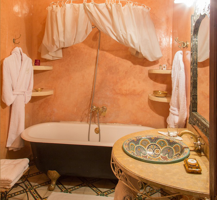 La Suite Souissi du Riad Dar El Kebira offre un espace généreux de 35 m², décoré dans un style arabo-andalou élégant et apaisant. Équipée d’un lit king-size, d’un coin salon, d’une salle de bains privative avec baignoire sur pied et de commodités modernes, elle promet un séjour luxueux et relaxant au cœur de la médina de Rabat. Fruits et eau vous attendent à votre arrivée, et un petit déjeuner marocain traditionnel est inclus chaque matin.