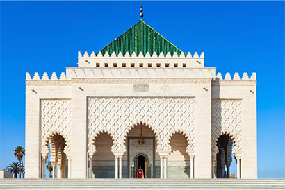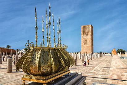 Des gardes royaux sont postés à l’entrée de l’esplanade où se dressent la Tour Hassan et le Mausolée du Roi Mohamed V. La mémoire de deux Rois est ainsi honoré en un même lieu : l’un grand bâtisseur et guerrier du temps de la formation du pays, l’autre homme d’état du 20e siècle qui a mené la nation a sa pleine indépendance.