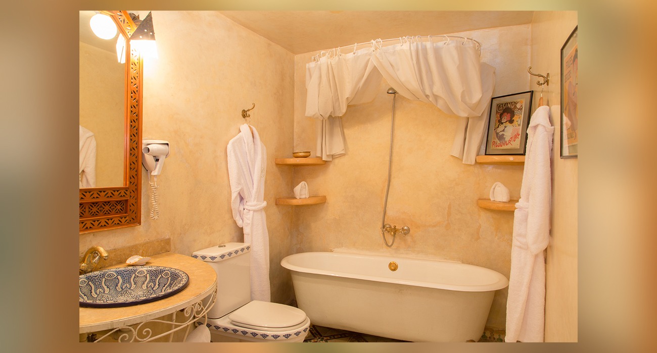 Cet espace de 30 m² repose sur les standards d’excellence. Elle est d’ailleurs ornée alliant art arabo-andalou et infrastructures actuelles. Chaque espace a été agencé de manière à offrir confort et sentiment de chaleur sophistiqué, calme et paix pour les gens visitant la médina de Rabat.